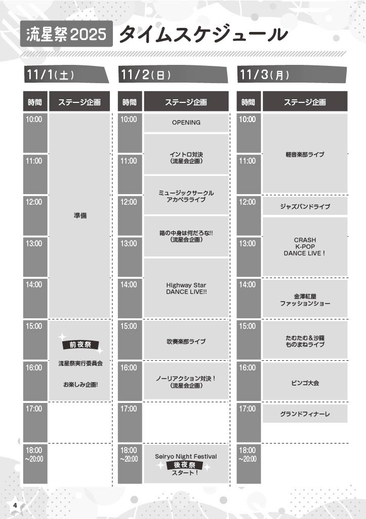 ステージ企画タイムスケジュール
